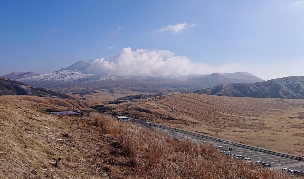 阿蘇中岳火口からモクモクと出ている白煙はモクモクの量がすごかった。そして、広く、とても寒かった。。。
