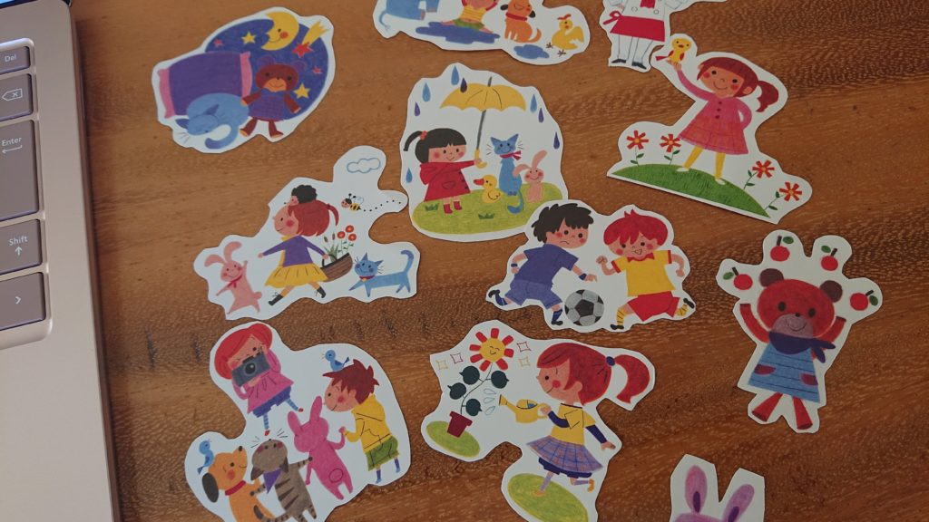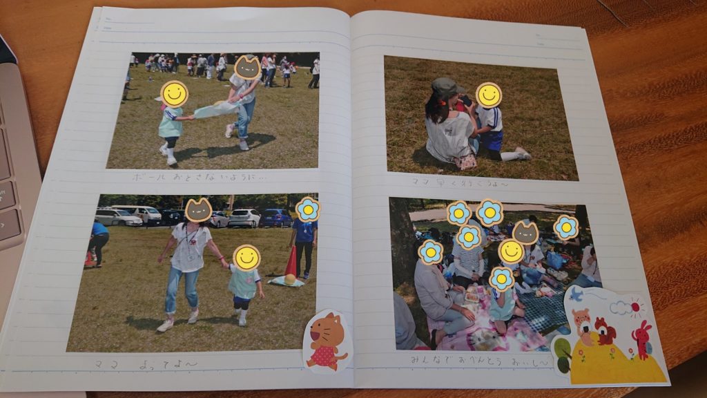 ドリルが全部終わったら、かわいいアルバムに使えそうなイラストを切って保管しておきました。写真以外に絵があるだけで華やかで楽しくなりますよね♪