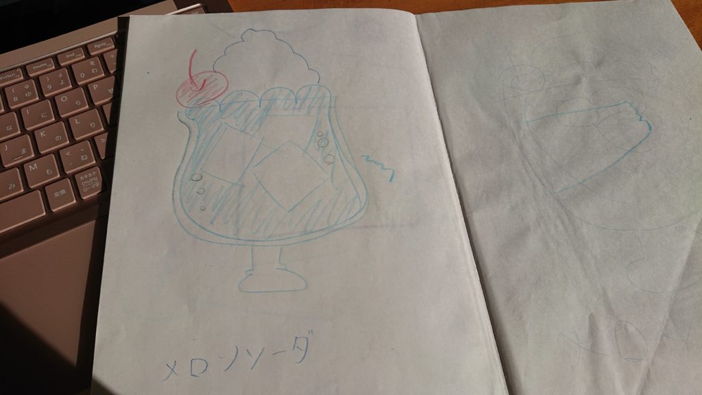 先日、マハちゃんが「このノートもう全部使っちゃったから捨てていいよ。」ともってきたノート。マハちゃんが3才くらいから気が向いたときにお絵描きで使っていた自由帳(無地)。